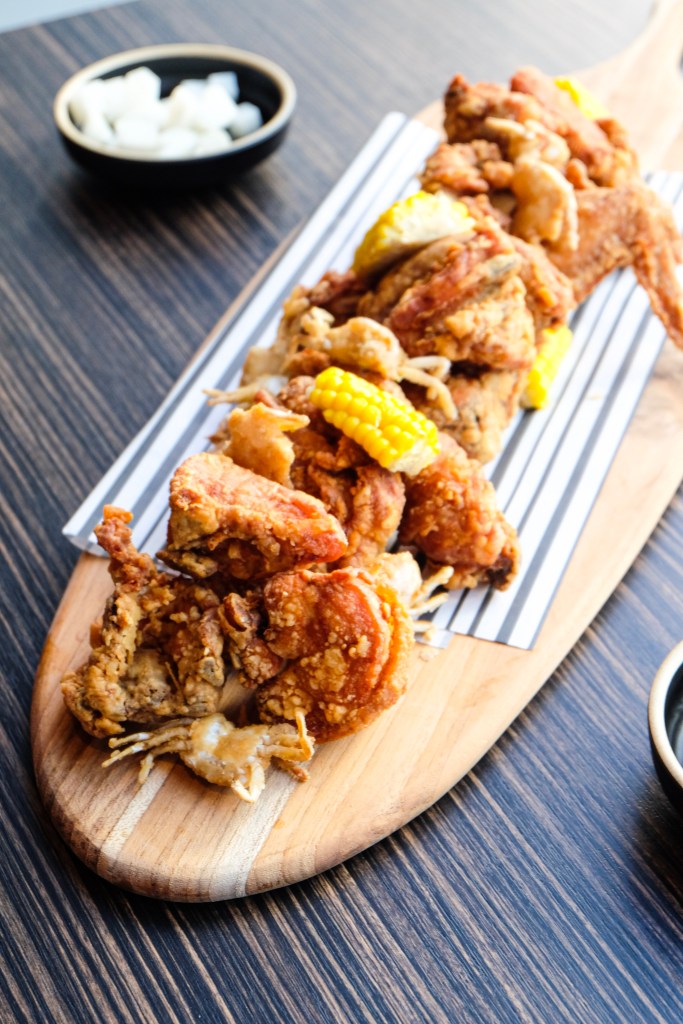 This dish highlighted the classic Korean fried chicken with corn and crunchy small crabs. The bread was thicker that what I would have imagine.