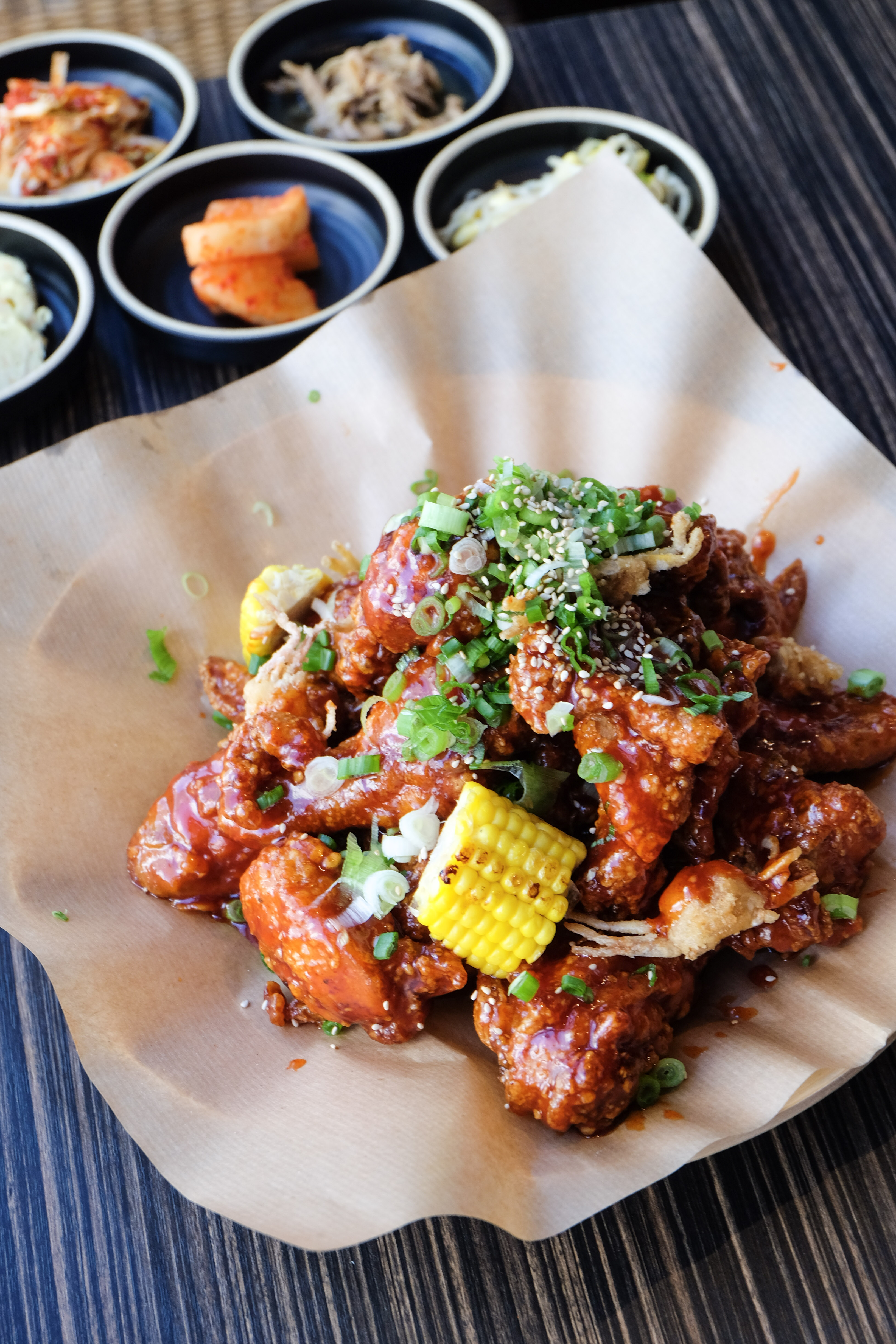 Drenched in a sweet and spicy chilli sauce, this classic yangneyom chicken was a great sharing dish amongst at least 3-4 people. This saucy fried chicken came with sweet corn and a crunchy small crabs