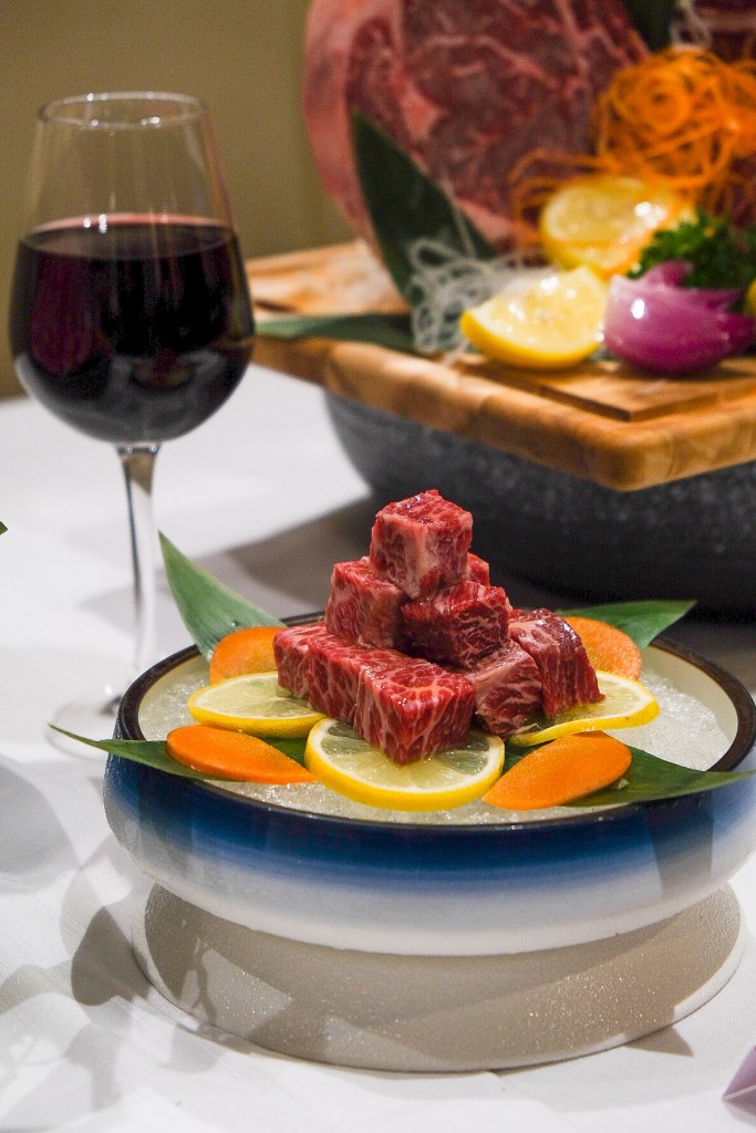 The waygu beef (right) was the star of that night with its beautiful marbling. Even though I overcooked it because i kept forgetting about it, it still retained its luscious marbling through out the meat.