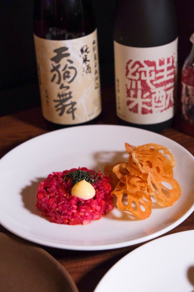 Tuna tartare, pickled mustard seeds, mentaiko mayo, lotus chips