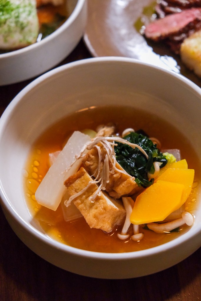 The halibut was flakey and delicate. It melted in my mouth and not much chewing was needed. I love a good dashi and it had a deep shoyu flavour. The wakame added a slightly sweet but sea salt flavour to round out the dish’s unami flavour. The mash potatoes soaked up that dashi broth and it was delicious!