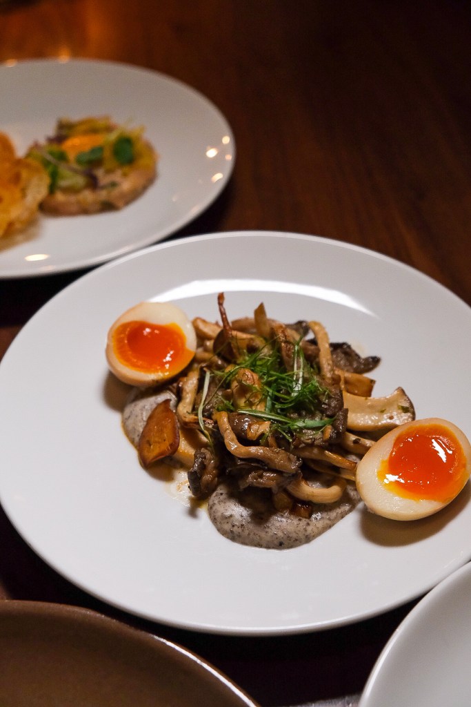 Cultivated mushrooms, truffle celeriac puree, yuzu brown butter, ramen egg (both in Omnivore and Vegetarian menu)