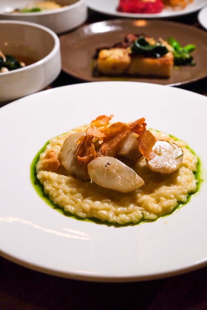 PiDGiN was smart to use Carnaroli because it is more resistant to overcooking and its starch produces the creamiest consistent among the other types of risotto rice. I definitely did not find any over or undercooked rice and I love how the grain is larger than arborio rice. The sunchoke s were a tad bitter in the beginning bite but the garlic chips helped give it a savory and fragrant mask.