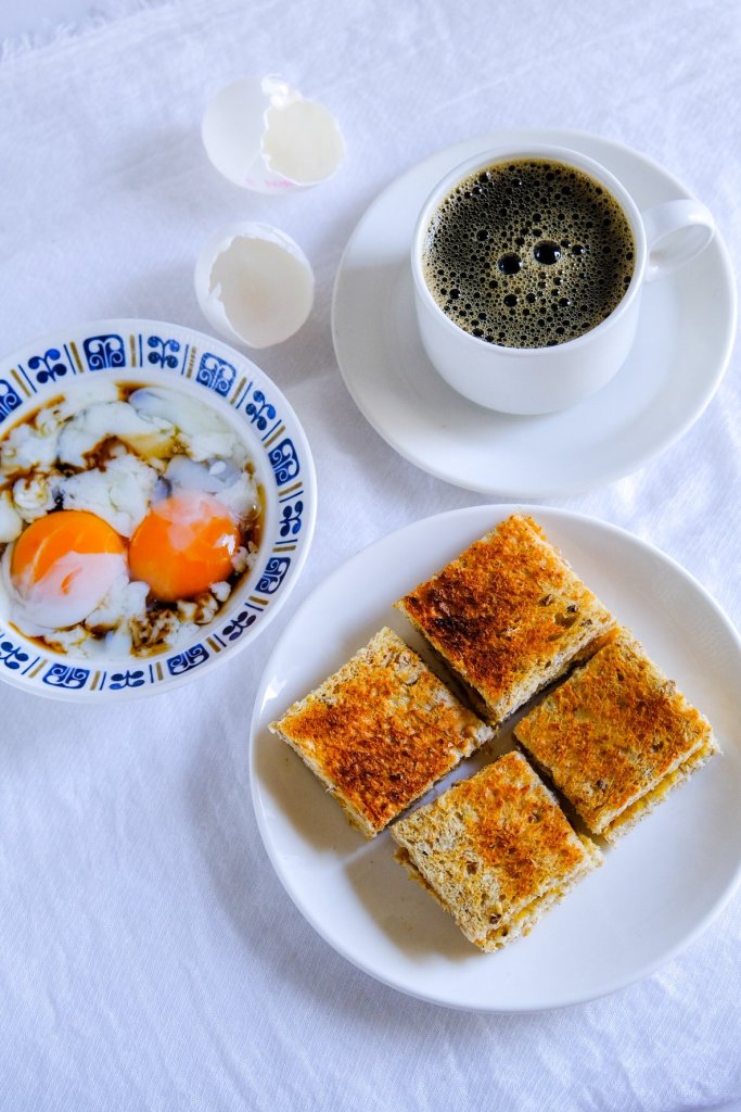My trip to Singapore has been cancelled due to COVID-19. On the positive note, I gave myself a staycation by making a popular Singaporean Breakfast of kaya toast, soft boiled eggs and kopi found at kopitiams.