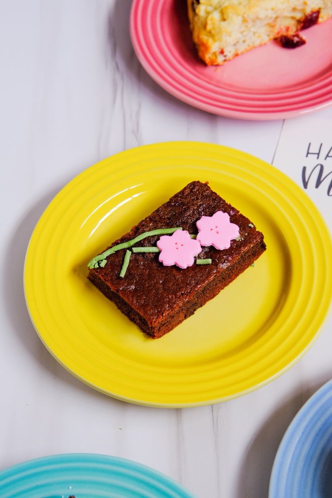 Unlike the American fudgy style, this mochi brownie is made with rice flour and chickpeas which gives it a very springy and light texture. Most mochi brownies remind me of Chinese Nian Gao but this more of a sponge cake with a chewy texture. You don’t feel heavy after eating it and the sweetness level was perfect.