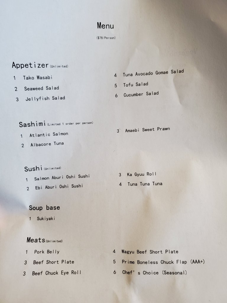 The price is steep but there is no denying that the quality of the sukiyaki broth really stole the show. The meats were as expected, marbled and tender throughout. Just the sashimi alone, you can definitely eat $30-40 worth. They are strict with the health code by doing temperature checks, offering hand sanitizer and seating groups apart. They also offer a very value worthy lunch set for $19.99.