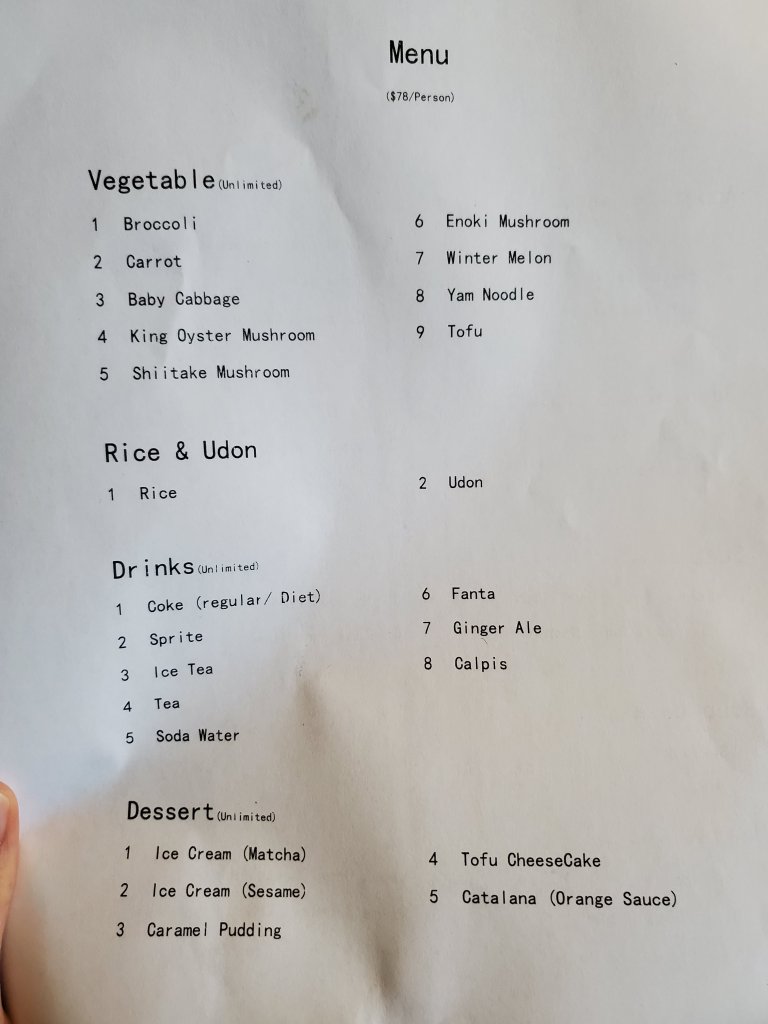 Due to Covid-19, they will serve you a box of fresh vegetables instead doing self-serve. These vegetables are great for soaking up the broth and are frequently served with sukiyaki.