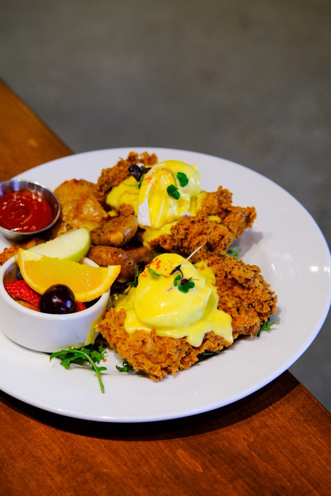 The crispy batter on the chicken was oil-free and the chicken itself was moist and tender. The poached eggs were runny and the hollandaise sauce was creamy. The dish came with smash potatoes which had a light crisp to it and not overly oily in overall mouth feel.