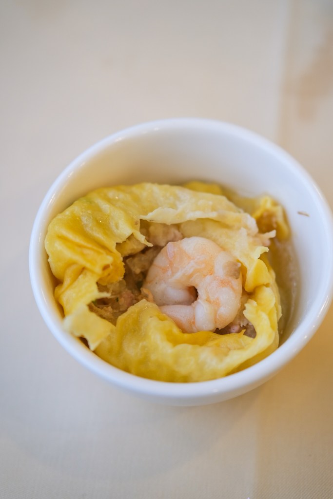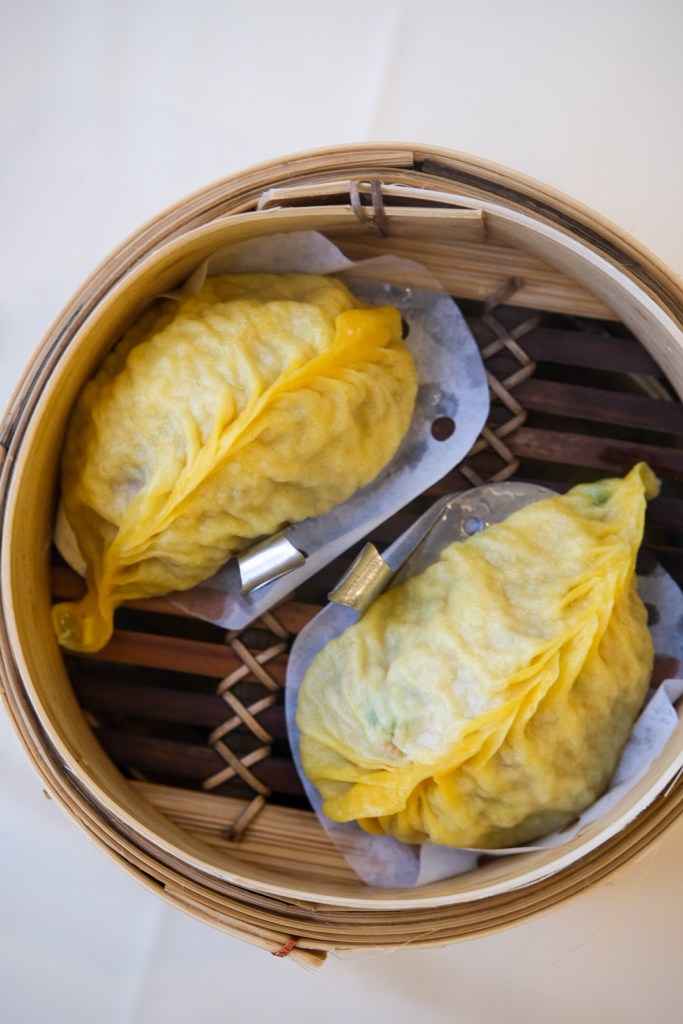 These large and delicate soup dumplings are filled with seafood and minced pork. This soup dumpling is traditionally steamed. Yet many dim sum chefs lack the skills to determine when the dumplings are ready. So to avoid waste, these large soup dumplings are served in a bowl.