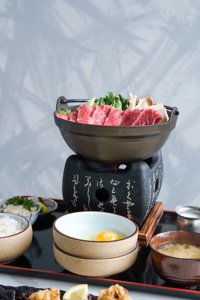 Sukiyaki is a hot pot filled with sweet soy sauce broth and a variety of vegetables and thinly sliced beef. Hoshi puts their spin on it by offering milk to make the broth creamier and less salty.