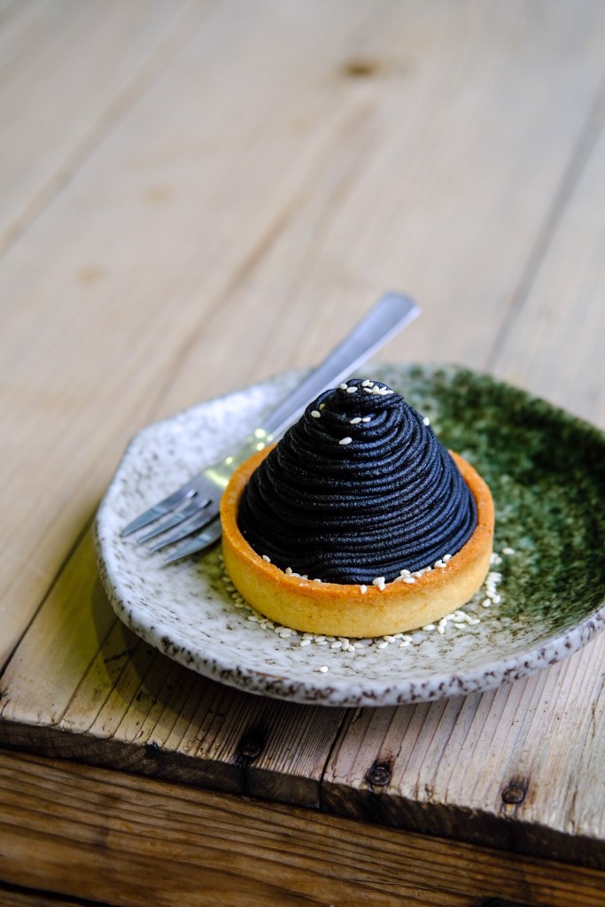 A twist on the classic Mont Blanc, Hvala created a black sesame version which was super fragrant, and nutty. There’s vegan cream on the inside holding up the black sesame chestnut paste and almond frangipane centre with a crispy tart shell.